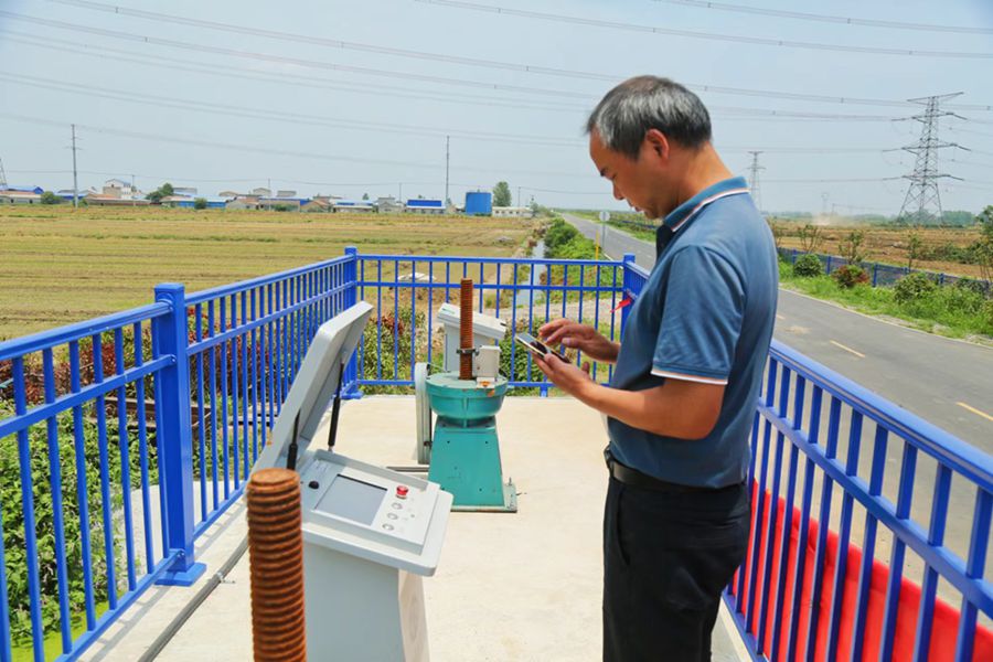 农场公司充分发挥近两年实施的农业灌溉工程改造项目以及高标准农田改造提升项目的工程效益,增加一、二级泵站的装机容量,加高主干灌溉渠,新增管理区三级泵站和相应的管道输水系统,同时引入智能灌溉控制系统,通过灌渠和田间水位自动监测、系统识别和入网手机操作,对泵站运行和闸门起降实施远程控制,实现了“按键一点、水流进地,自动控制、水位精准”。