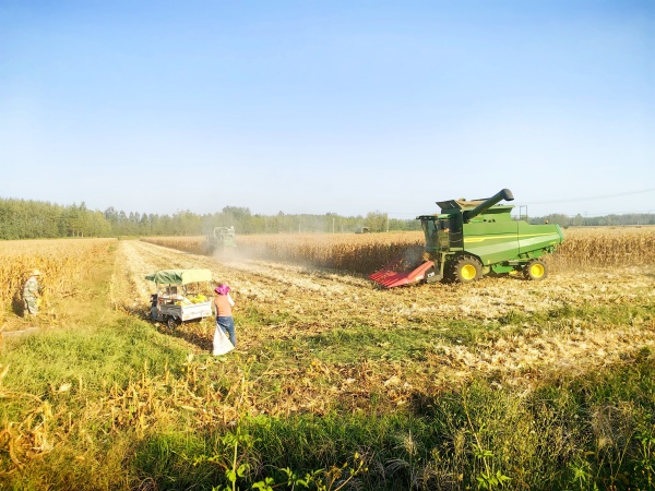 10月3日,在夹沟农场公司万亩田野中,一台台收割机和打捆机来回穿梭,将成熟的玉米收割归仓、秸秆打捆,拉开了秋收秋种工作的序幕。至10月5日,该场已完成玉米收割5000余亩,同时,玉米回收、烘干和销售等社会化服务工作也在有条不紊的紧张进行。预计到10月10日,夹沟农场公司1.1万亩玉米全部收割完毕,并迅速转段秋种工作。