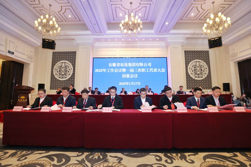 在1月17日上午举行的闭幕会上,会议一致通过了《安徽省农垦集团2025年工作会议暨一届三次职工代表大会安徽农垦集团工作报告的决议》。集团公司主要领导分别与二级企业主要负责人签订了2025年企业经营业绩目标责任书。
