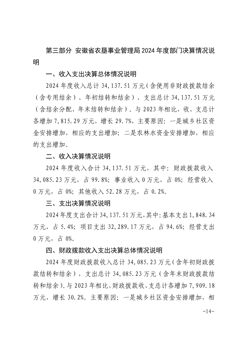 安徽农垦集团:下载链接:安徽省农垦事业管理局2024年度部门决算.pdf