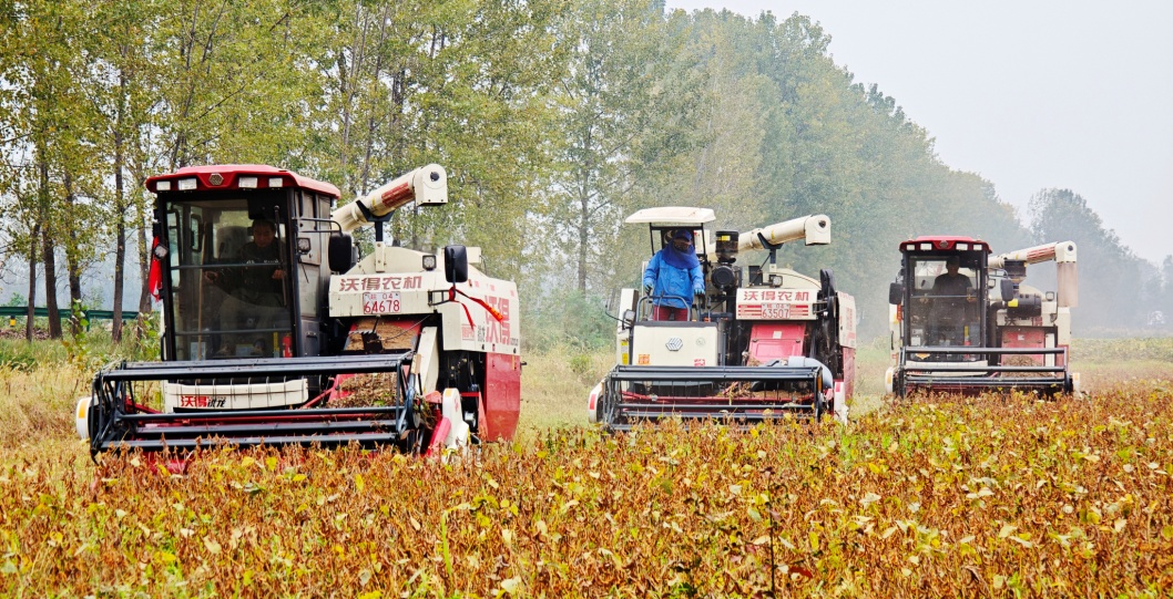 正阳关农场大豆收割作业。(胡寅之 摄)