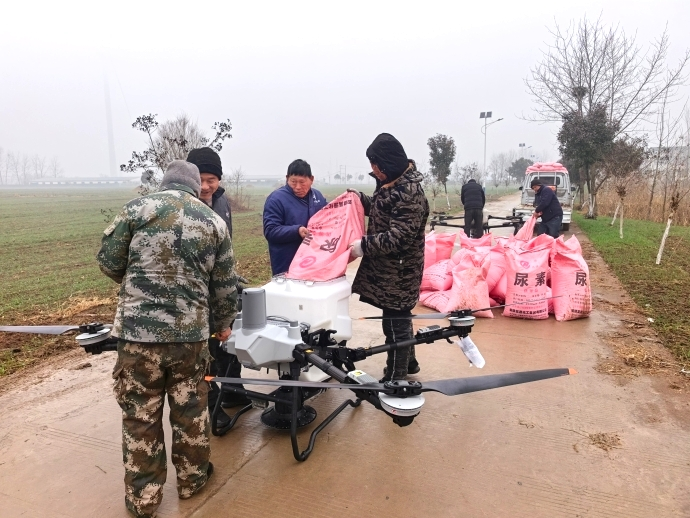 焦岗湖农场针对部分小麦田块出现叶龄偏小、群体不足等问题,采取 “以促为主、分类施策、精准管理”的办法,组织10余名农业生产管理人员深入田间地头,调度6架植保无人机,按每亩20斤左右的标准追施分蘖肥,推动苗情转化升级,切实解决“弱苗变壮苗”的关键问题。